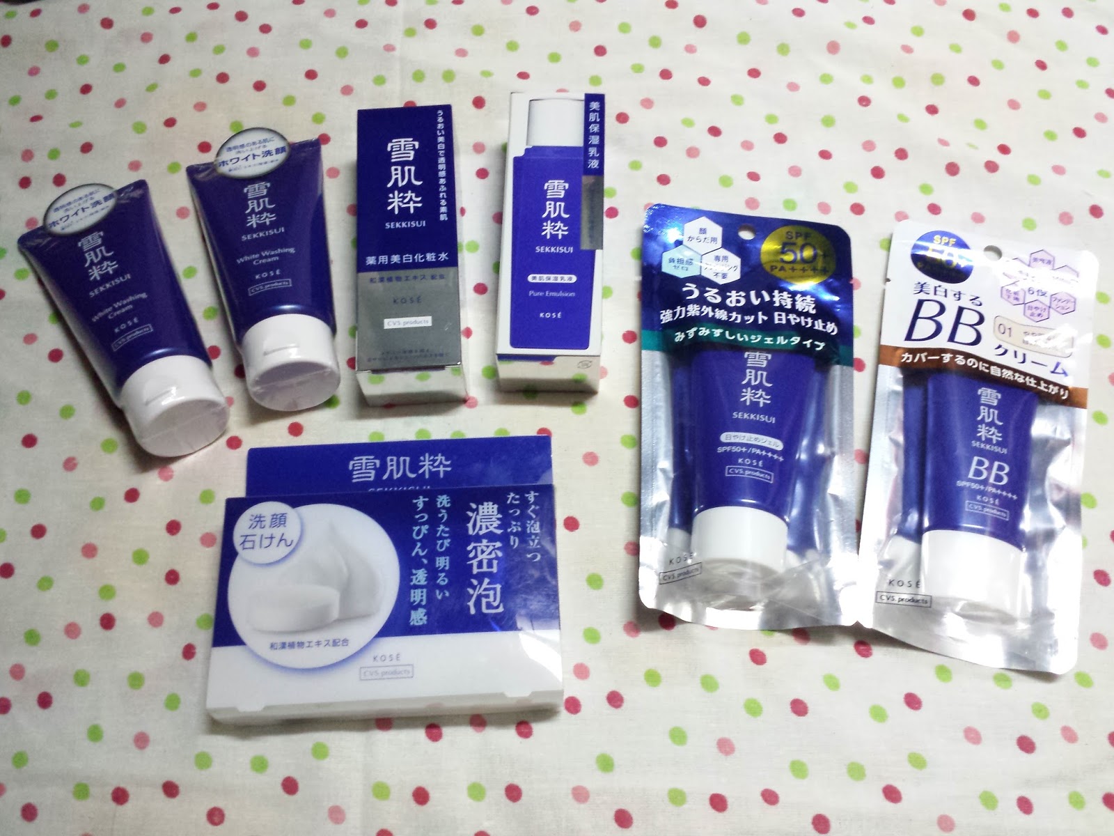 除了洗臉膏外,其實雪肌粹還有很多產品,欣欣便順道帶了它的化粧水、乳液、潔臉皂、BB霜和防曬霜各一件,如果好用,下次再回購。