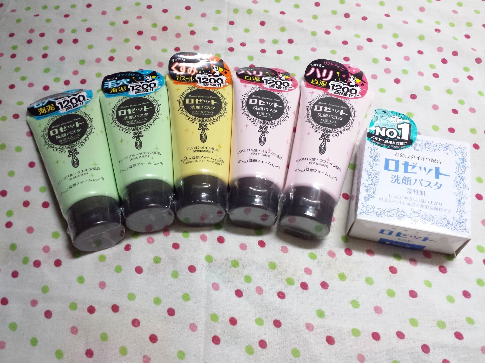 盒裝的ロゼット Rosette 溫泉潔顏系列洗臉膏,普遍會貴一點,分別有3款,藍色(乾性肌膚用)、粉紅色(普通肌膚用)、桃紅色(卸妝及潔臉用)。