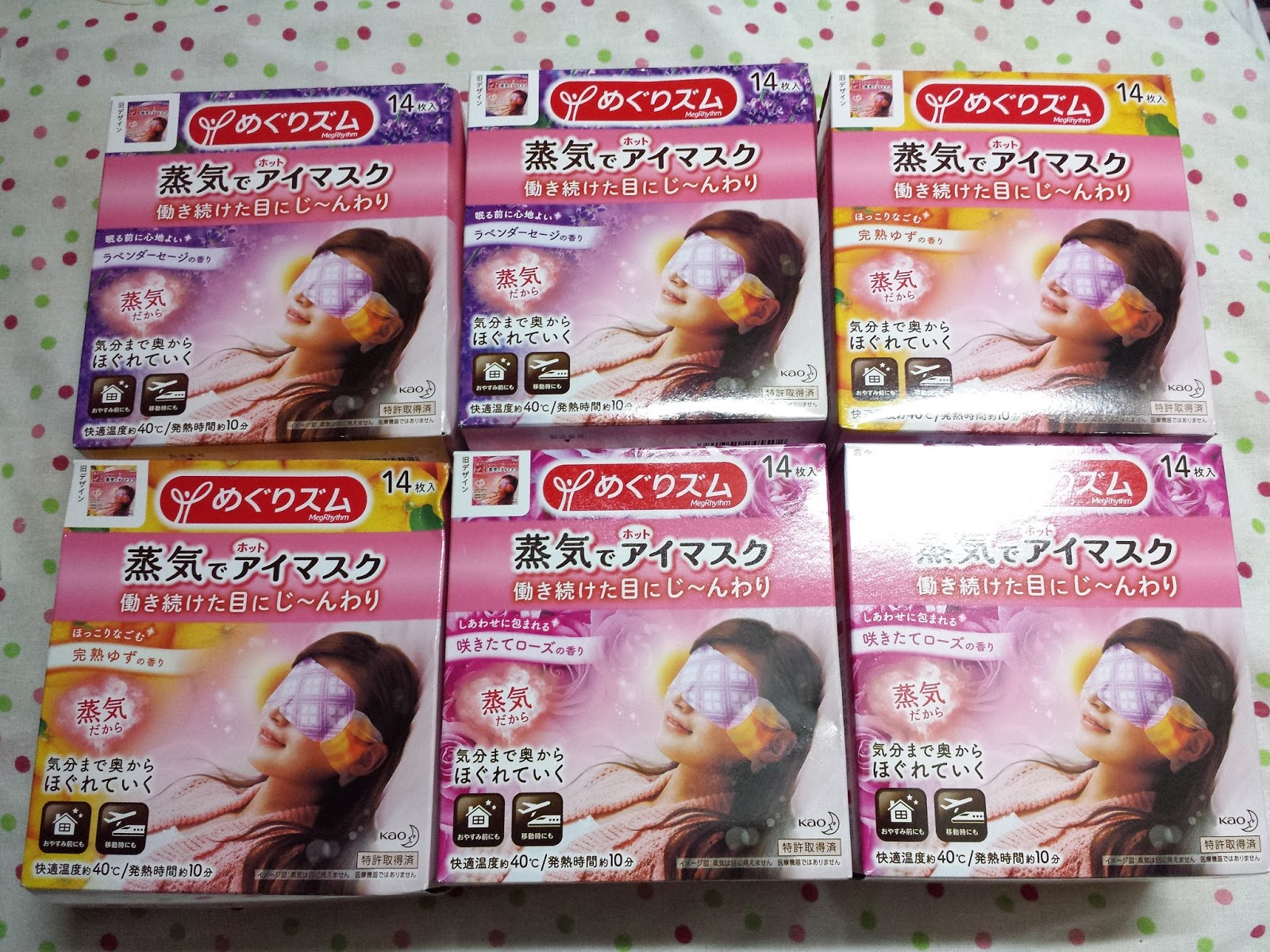 花王蒸汽眼膜14片薰衣草味(左上)、柚子味(左下)、玫瑰味(右下) ¥880